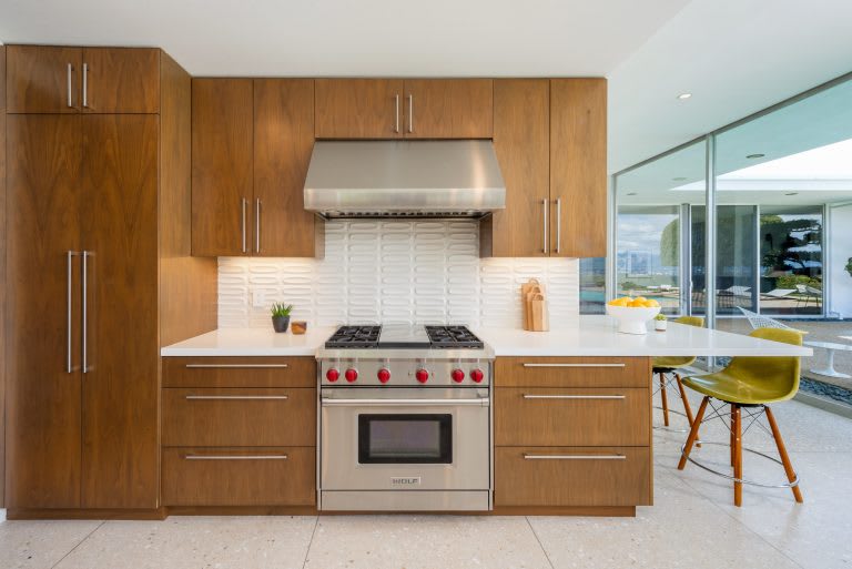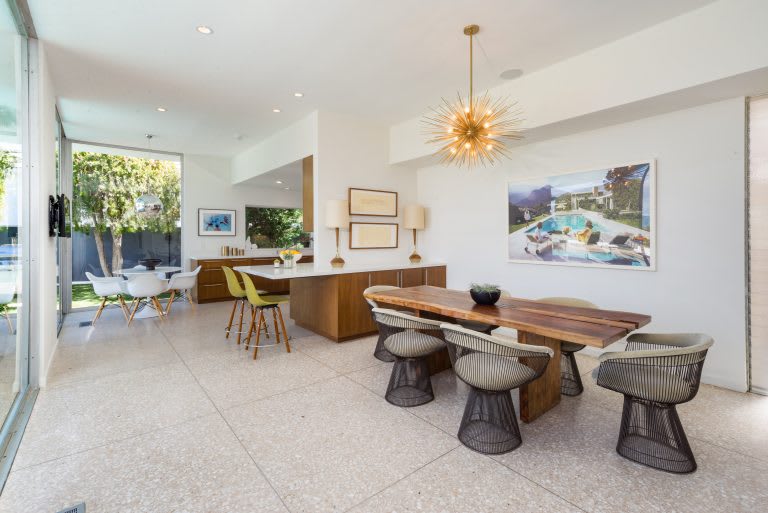 Custom California walnut hardwood floors throughout main living areas complete the timeless lines & iconic architecture.